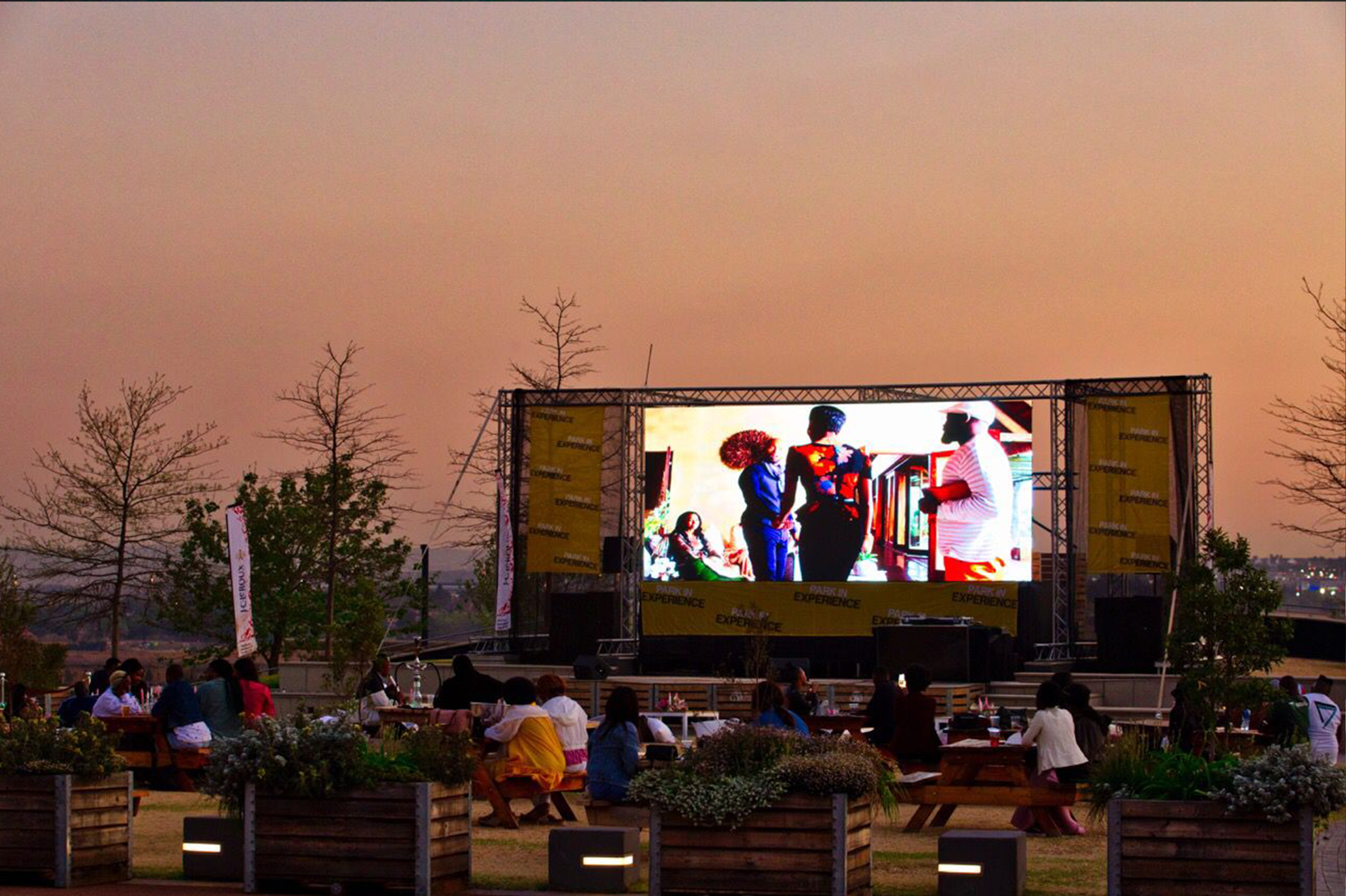Park In Experience is an outdoor cinema consisting of a large outdoor movie screen, a projection booth, concession stands, and a large parking area for cars – a setting reminiscent of the beloved weekend drive-in outing. Within this enclosed area, guests can watch films from the privacy and comfort of their cars, to gaze under the stars and enjoy the perfect weather or opt for a picnic set up with friends. With stringent safety and hygiene measures, adhering to COVID-19 regulations. Our visitors will certainly enjoy a secure outdoor experience.